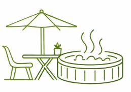 Chata nabízí zázemí pro pohodlný pobyt i příjemné chvíle odpočinku během celého roku. K dispozici je koupelna se sprchou a toaletou, malá útulná ložnice s manželskou postelí, obývací prostor a kuchyňský kout. Za chatou se nachází místo pro grilování a venkovní stolování, na vyvýšené terase pak wellness zóna s vířivkou, sprchou a lehátky s výhledem na rybník Broumar. Součástí vybavení jsou také dvě projekční plátna – vnitřní i venkovní – spolu s přenosným projektorem a soundbarem, díky nimž si můžete užít filmové večery v jedinečné atmosféře. Pro maximální pohodlí v každém ročním období je chata vybavena klimatizací s možností chlazení i vytápění, v zimě pak útulnou atmosféru dotvářejí kamna s připraveným dřevem.